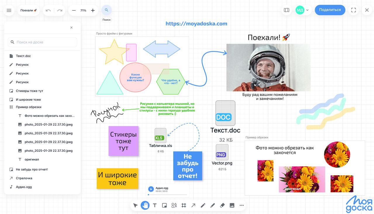 Напоминаю что кроме PDF МояДоска также поддерживает возможность добавления файлов для скачивания, аудиофайлы с возможностью их воспроизведения, ну и разумеется фотографии с обрезкой их прямо на доске!